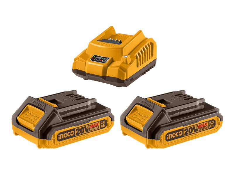 INGCO Akkumulátor és töltő szett 20 V (2 x 2,0 Ah akku + 2,0 A töltő)