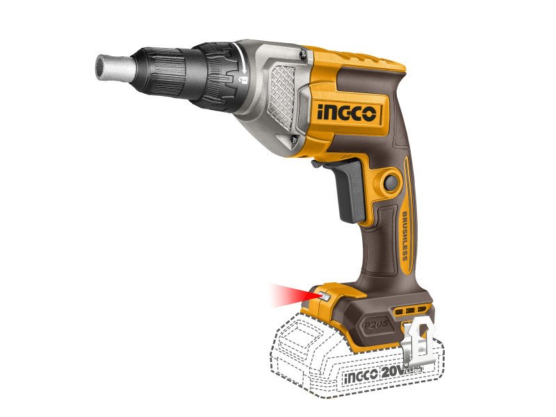 INGCO Akkus gipszkarton csavarbehajtó szénkefe nélküli 20 V (akku és töltő nélkül)