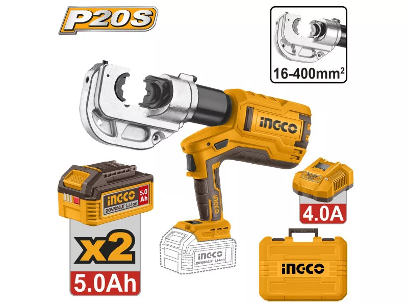 INGCO Akkus hidraulikus kábelkrimpelő 16-400 mm2 (2 x 5,0 Ah akku + töltő)