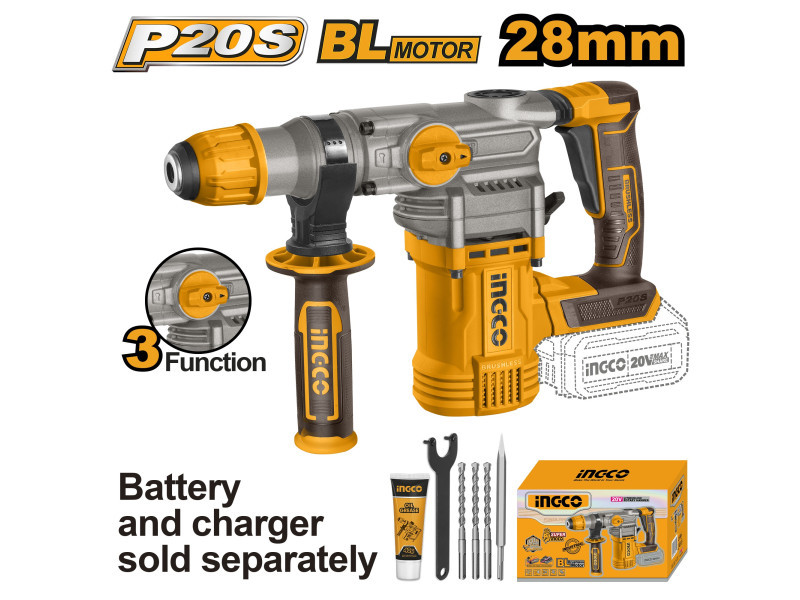 INGCO Akkus kombikalapács 4,5 J SDS-Plus szénkefe nélküli 20 V (akku és töltő nélkül)