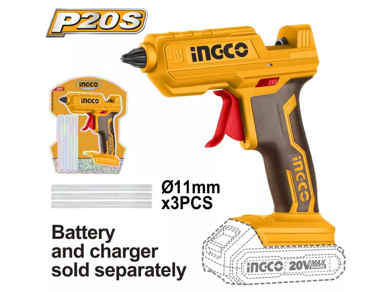 INGCO Akkus ragasztópisztoly 11 mm 20 V (akku és töltő nélkül)