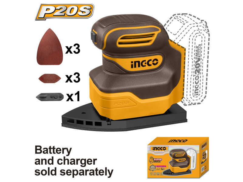 INGCO Akkus rezgőcsiszoló 20 V (akku és töltő nélkül)