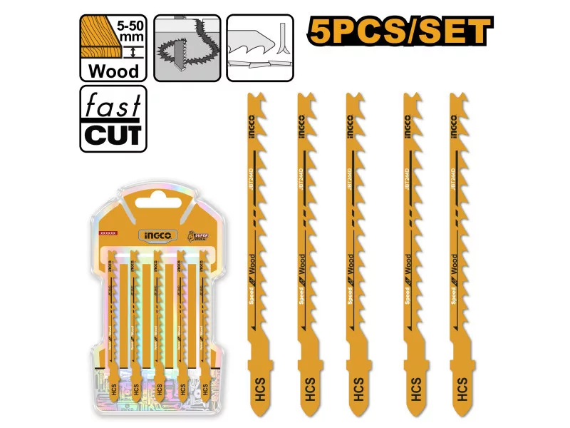 INGCO Dekopírfűrészlap fára 100/74 mm 6 TPI íves vágás HCS (5 db)