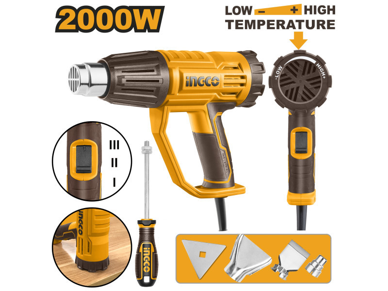 INGCO Hőlégfúvó 550°C 2000 W + tartozékok