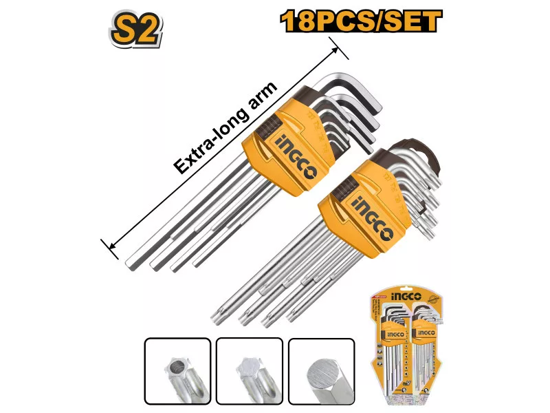 INGCO Hosszú torx és imbuszkulcs készlet 18 részes