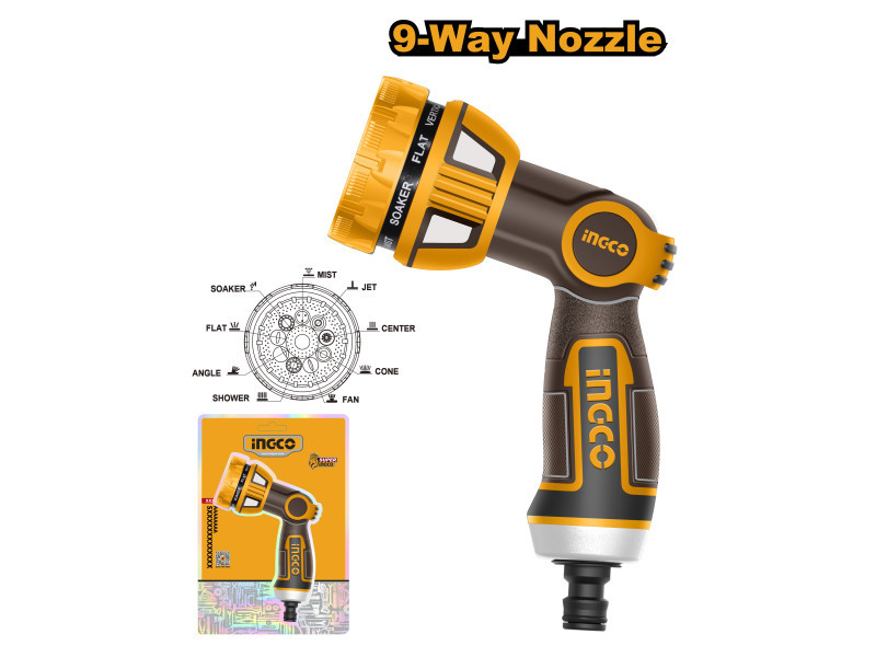 INGCO Öntözőpisztoly 9 funkciós fémbetétes