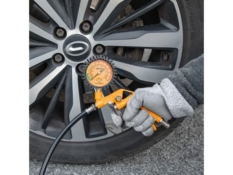 5. Gumiabroncs-nyomás mérő pisztoly: nagy pontosságú számlap, felfújás, leeresztés és gumiabroncs-nyomás érzékelés három funkcióval.