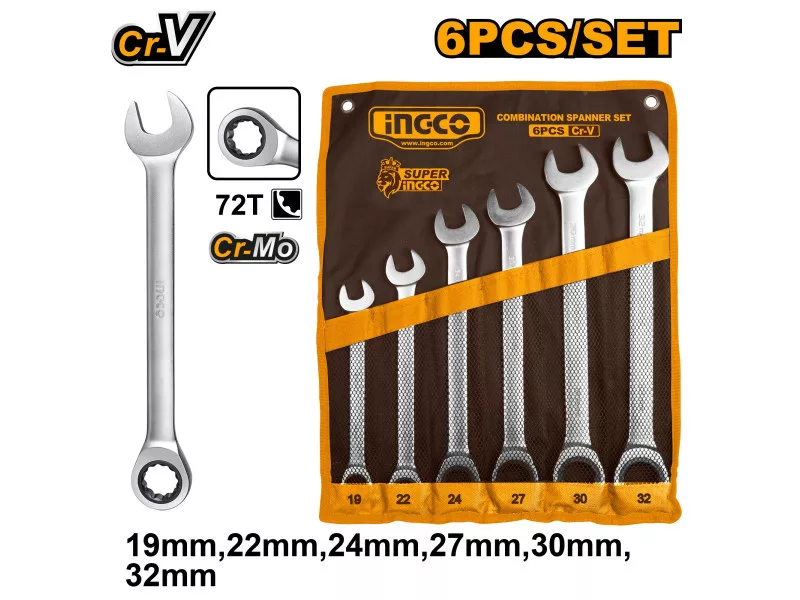 INGCO Racsnis csillag-villácskulcs készlet 6 részes 19-32 mm CrV