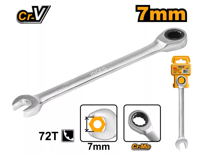 INGCO Racsnis csillag-villáskulcs 7 mm / 140 mm CrV