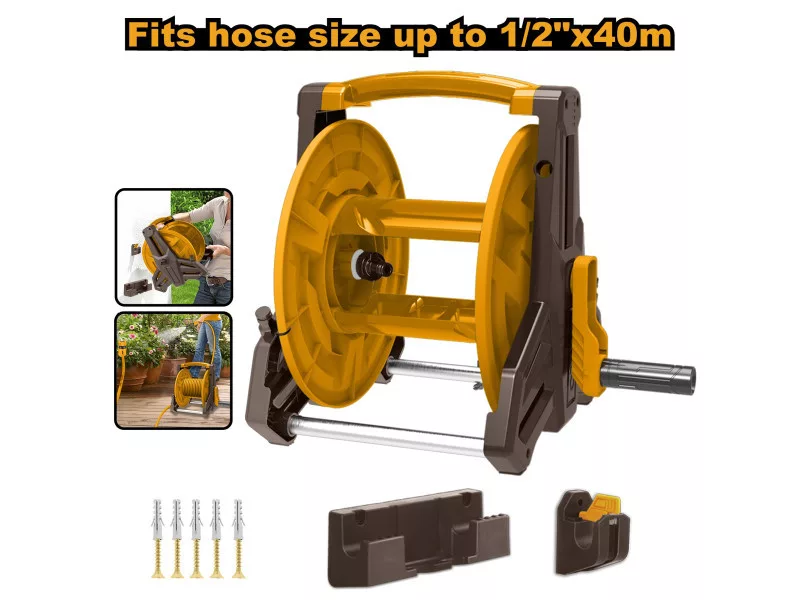 Szállítási terjedelem: 1 db tömlőtartó, 5 db csavar + tipli, 2 db konzol a falra szereléshez, Kartondobozban